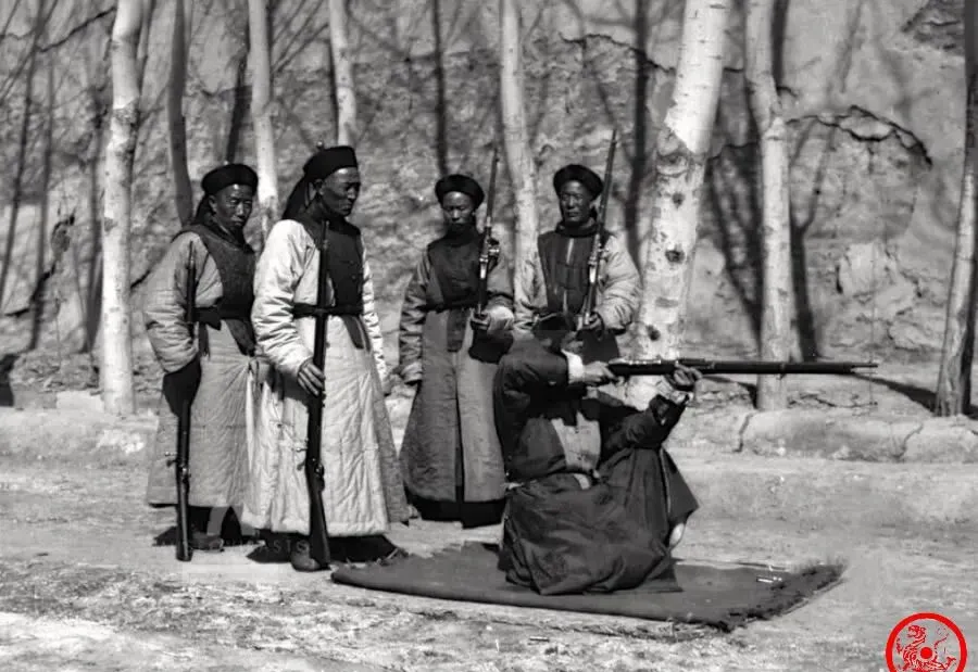 照片里的这几个穿长袍马褂的人,可不是闲人聚会,他们是清末的新式军人,手上攥的长枪,大伙儿都看得出来是个洋货,靠近一看,那长枪比人还高半头,挺压场的,不过要说用得好不好,才是另一回事,那时候枪有了,练习时左顾右盼的也多,谁的站姿软塌塌的,谁就被老兵叨咕几句,爷爷以前说,老清兵打仗酒肆赌坊多,真到场子上,心思不一地练最麻烦,可见器械有了,精气神没跟上,这能不落下嘛。