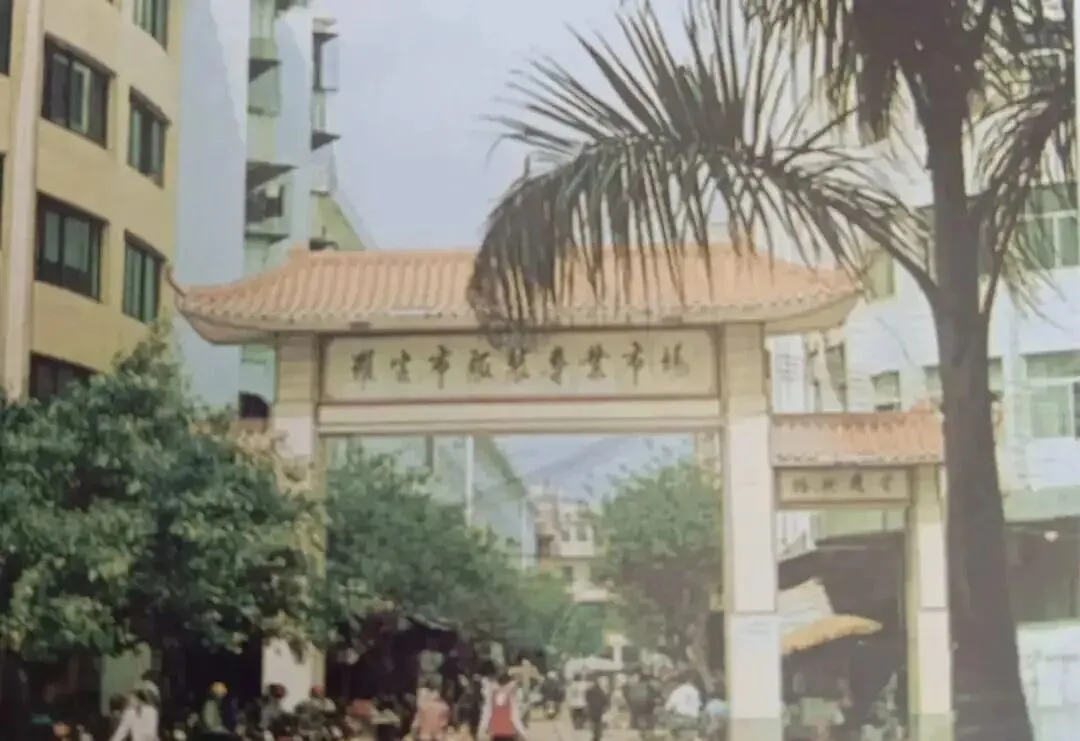 图中这座瓦檐红柱的拱门,写着云浮市城区农贸市场,那会儿市场门口摩托单车比人还多,早上四点多菜贩抬筐进,尖叫着摊价,巷子里挤得满满当当,买菜的姑娘拎着篮子回头跟人说“阿姨便宜点啦”,摊主应一声手上菜刀不停,汗水顺了桌沿滴下来,今天超市再宽敞,还是怀念这种人挤人的踏实劲。