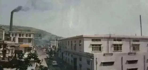 这一张是老工业区的厂房照,画面左边烟囱直直冒着黑烟,右边全是低矮的老厂房,窗户老式细格子,空气弥漫着煤气味,叔叔们穿着灰蓝色工服骑二八大杠来上班,马路不宽但整洁,斜坡上停着旧解放牌卡车,如今城区变样,烟囱的影子都被高楼大厦盖住了,想再闻闻那个年代的厂区味,怕是只有梦里头。