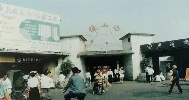 这张灰色门楼和人潮就是老佛山站,门头那几个红色老字一晃几十年都没变样,周边几间铺子、小饭馆,门口来来去去总有人踩着单车等车,最早时汽车没那么多,哪怕有个大箱子的摩托车都算气派,车站外拉客的声音混着喇叭,连旁边卖蒸包的小摊都热闹,等火车的队伍排到街上,买票窗口的人总说:“队尾去那边,不要挤”,家里谁要出远门,都得托人帮忙盯着时间,那会出门没有导航没有APP,啥都是问出来的。
