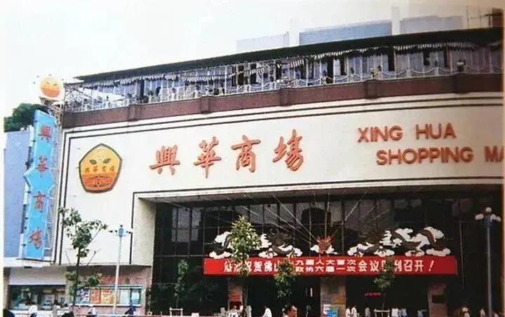 这个商场好几代佛山人都熟,图中大门上“兴华商场”四个红字就是活招牌,小时候妈妈换季,总带我来这里选衣服,里面最早卖的还不止服装,杂货、小百货、老式糖果全部都摆在一堆,记得那时候二楼刚装修好,玻璃柜里头的毛衣手感扎手,旁边总凑着一堆大人谈价讲笑,门口大红横幅,商场搞活动就挂出通知布,气氛一下子热闹起来。