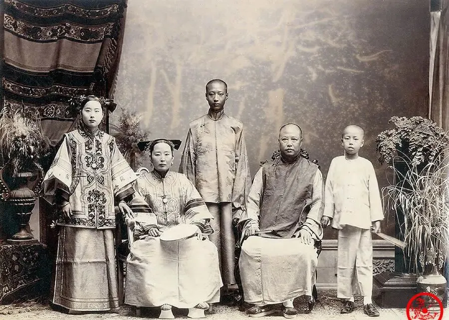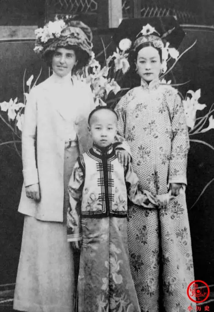 右边这位穿旗袍的女子叫静荣,一边站着一个外国女客,西帽子上花儿开得大,身边小朋友打扮得也规矩,静荣是慈禧太后外家侄女,大家闺秀嫁进宫门,旁边的外国衣服和中国长衫这般搭一起,那个年代其实有人愿意试新鲜,家里老人讲“老太太不怎么管了,府里气氛松”,能和洋人合个影也算胆子大