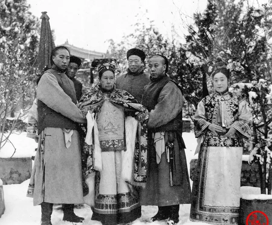 这里面站得最中间的就是慈禧太后,一顶大帽子披着厚衣裳,身两侧的几位是贴身太监和贴身女官,雪地脚下打着厚底鞋,神情冷峻,这阵仗平常人哪敢凑近,我记得小时候家里人一提慈禧总是摇头,“管得多,事儿也细”,她这一赏雪,也变成了大事,旁边的丫鬟只能静静陪着,没人敢出声,现在大人物怎么“冬雪出镜”,谁不打个趣发条朋友圈,完全不一样
