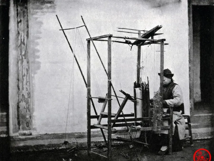 桌子搭得高高,坐着的是个织布的老师傅,整副机器用木头骨架撑着,线在空中缠来绕去,杆子拧着咯吱响,面前拉起来不紧不慢,小时候在农村见过最原始的织布活,妈妈说“以前织一床布得熬俩晚上”,现在一台电机几分钟就能出布料,老的手艺消停在角落,想找也麻烦