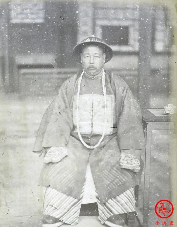 这位坐正中间穿官服的就是左宗棠,脸板着没笑,嘴角下压,眼神里有点不服气,身上珠串玉带,一丝不苟,桌子上茶杯放边上,正儿八经的官架子,老人家总提这名字,说“打硬仗不低头”,历史书上一句话,这种劲头才是真的
