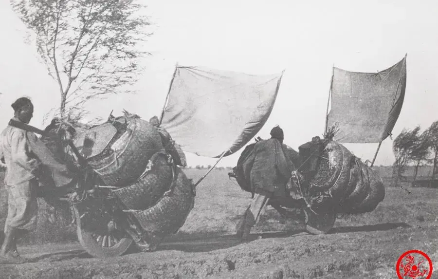 图里的大轮子叫独轮车,这玩意搁今天未必能上路,晚清那会儿可是老百姓手里的硬通货,你别小瞧它,车夫把几大篓货物全都堆到细细一根轴中间,两边倒是掂量得一清二楚,轮子下边全是泥土小路,有点坑坑洼洼,推着就得打满精神,风再大一点,人能被车带得打飘