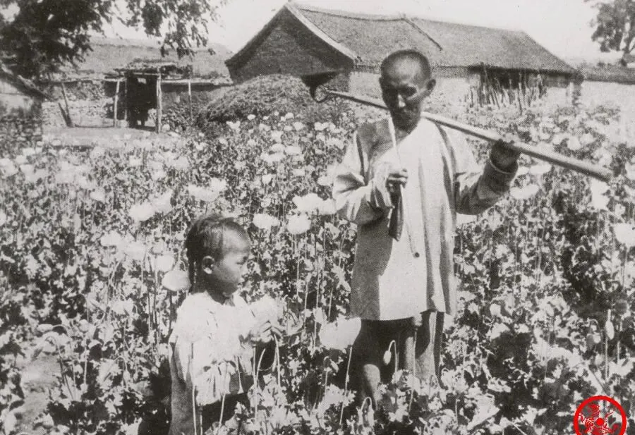 画面上的人脚下一片白花,这不是啥好东西,叫罂粟,种着是为了榨大烟膏,清末那几年地里粮秧让给了它,农人家心里头想着快钱没人顾得上后路,小孩儿钻进花海,手里攥着老爸的锄头,只顾东张西望