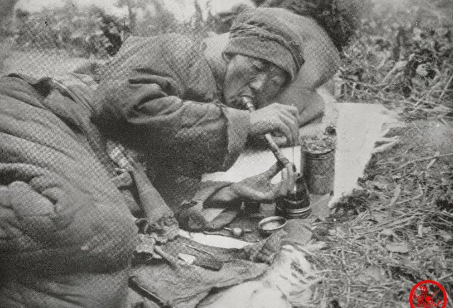 那年头清军兵营里头流这一股风气,管不住烟瘾,保护随身,到了要打仗的阵势,还不知哪家兵正琢磨偷个空抽两口,那会儿家里老人说,“身子骨都被抽趴下咯,还叫打仗哪,还不得被人家撵着跑。”这场景,现在的人想不明白,什么叫浑身没力,照片里都有。