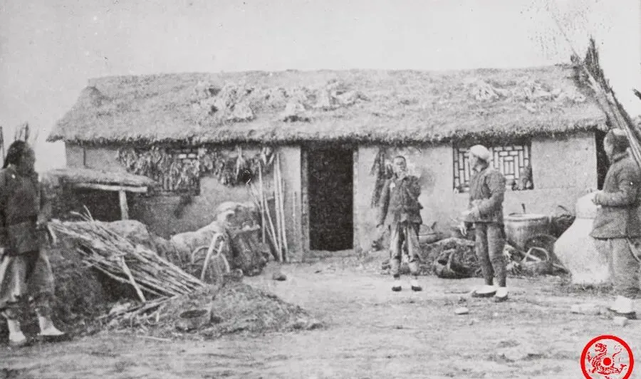 最后这一张,三间茅草屋子小院,风吹来了屋顶都得晃一晃,墙上挂着刚晾的菜疙瘩,灶台外人声稀稀拉拉,屋檐下是腌干的白菜萝卜,画面的一头猪圈拿矮墙圈着,厨房还藏在了院落后头,老北方农村的土味儿,可就在照片角落里都看得清清楚楚
