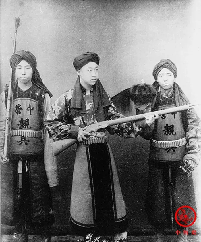 这个阵仗别说小孩见了怕,大人头回见也得叹口气,图里的清军兵丁个个肚子上挂着“亲兵营”的牌子,手里攥着温彻斯特M1873步枪,这枪那会在清军里是稀罕物,弹仓能装十三发子弹,所以绰号叫“十三太保”,一拉一扣,弹壳扑楞一下飞出去,家伙事儿虽旧,派头还真不小。
