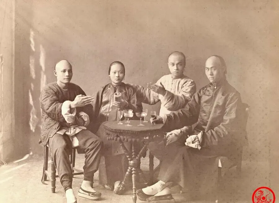坐在一起的四个人,衣服松垮,动作都带点局促,喝酒不像喝酒,倒像是合伙拍个大片,洋酒杯、木桌布,明明是洋气玩意儿,可人还是老派的,心里多少有点拘,小酒杯里藏的不是酒,是那时候新鲜事。