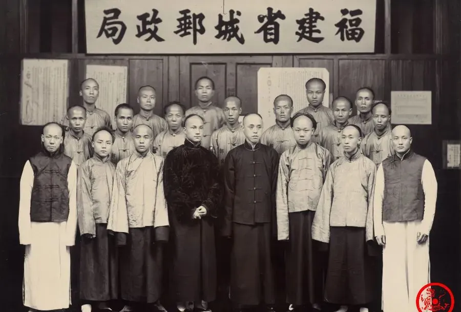 一排排的人站得正正齐齐,身后那块大匾写着建省城邮政局,前排是老练的管理,后面年轻的邮递员站得比排队还刻板,那时候邮局刚起步,还不太认识这行,说是新鲜,也有人看不懂干啥用,能和西洋比,叫大伙心里慢慢地服。