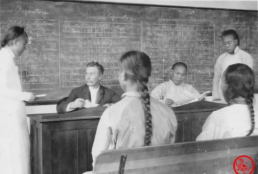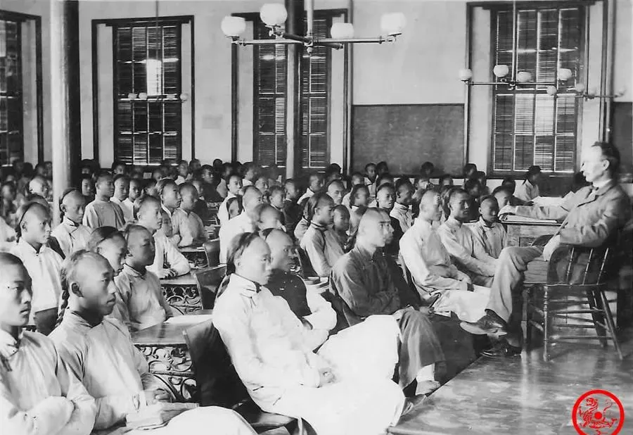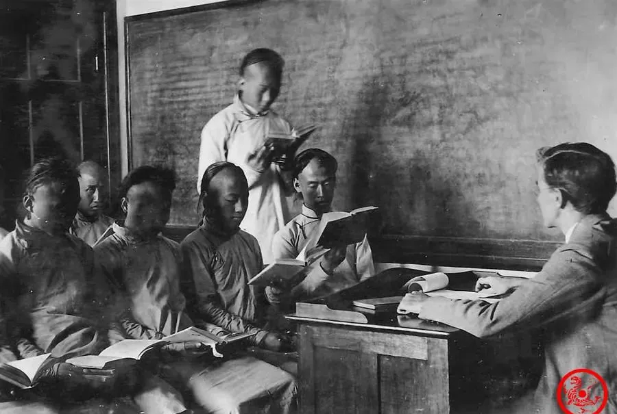 图里是一帮长辫子学生围着西式讲桌,全体低头翻书,前面坐着一位“洋老师”,西装领带没丢,桌上摊开的全是外文教材,这一屋子的静悄悄里,偶尔谁朗读一句,把“r”咬得直卷舌,身边同学就抬头偷笑,老师见怪不怪,拍拍课本示意继续,那会儿全外语教学不是噱头,是真刀实枪,家里大人见了估计得嘀咕一句“这洋玩意真新鲜”,“咱那时念书还得考对对子好坏,这会儿直接上外文”。