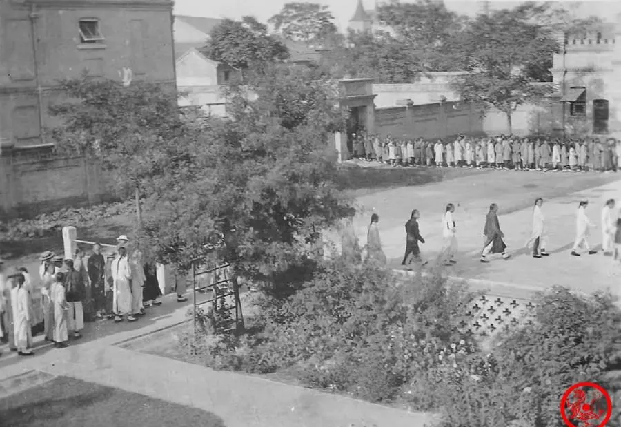 一大队学生从校门口排成长长龙,拐过花园一直进教堂,穿的全是宽袍长衫,不急不慢移着步子,有的还偷着说悄悄话,“那阵子校规严,不许乱说话”,赶上每周例会或者节日,谁敢乱套队形,好不容易进了教堂,心里装的还是每早两场的礼拜,哪像现在教堂成了景点,过去是心底的敬畏。