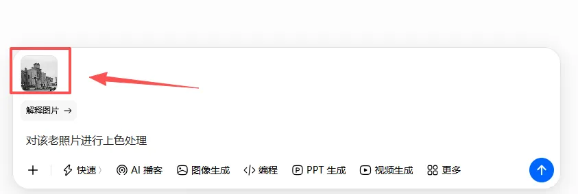 “解释图片 → 对该老照片进行上色处理”