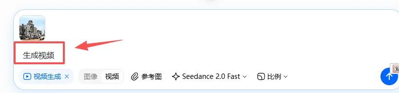 豆包调用Seedance 2.0 Fast 全能视频模型,开始生成视频。系统提示:“本次使用 Seedance 2.0 Fast 全能视频模型生成,将消耗 2 个视频生成额度,预计等待 1-3 分钟。”
