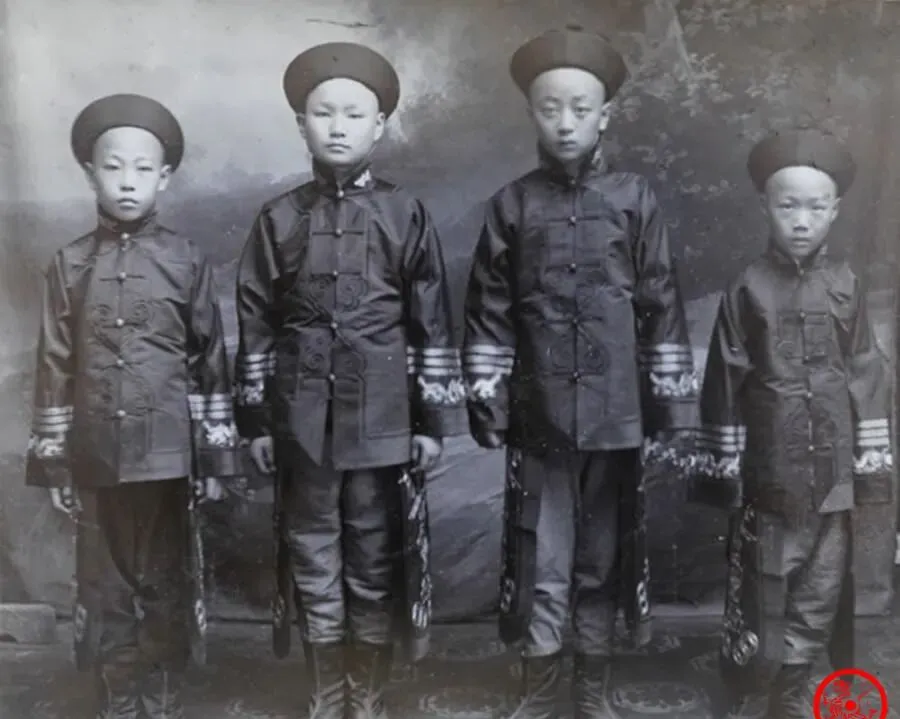 最后这排穿着笔挺制服的小孩,是晚清式海军服学生,帽檐发亮,衣服缎面,胸前袖口有复杂的纹饰,眸子亮亮,年岁却还小。照片发布时没说这些孩子啥来路,大多是家里父母有点来头,儿时便穿上军服照相留念。村里老爷子说,那时候谁家有亲戚走军路,娃娃自小穿戴周正,风头都挡不住。现在再翻这些照片,只能想象当年家长心里的盼头。