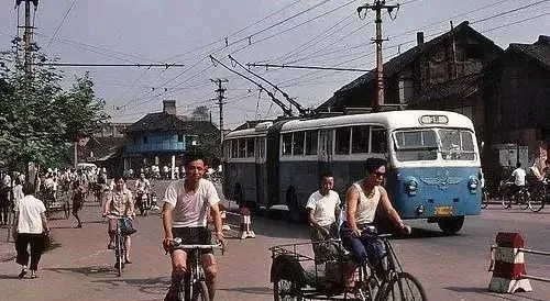 图里的蓝白色公交、后头拉着线的电车,是以前城里的主角,那时车也慢,票也便宜,夏天树荫下排着长队等车,司机师傅胳膊搭在窗框,有人吆喝着让一让,电车咔哒哒地行驶,遇到过站要敲玻璃,妈妈赶着我跑步追车正好挤上去,裤脚花边都飘起来,家里哪怕攒了一点钱,能坐车进趟城就觉得够气派,公交车上的铁扶手摸上去凉凉的,晃晃悠悠,过好几个站都舍不得下。