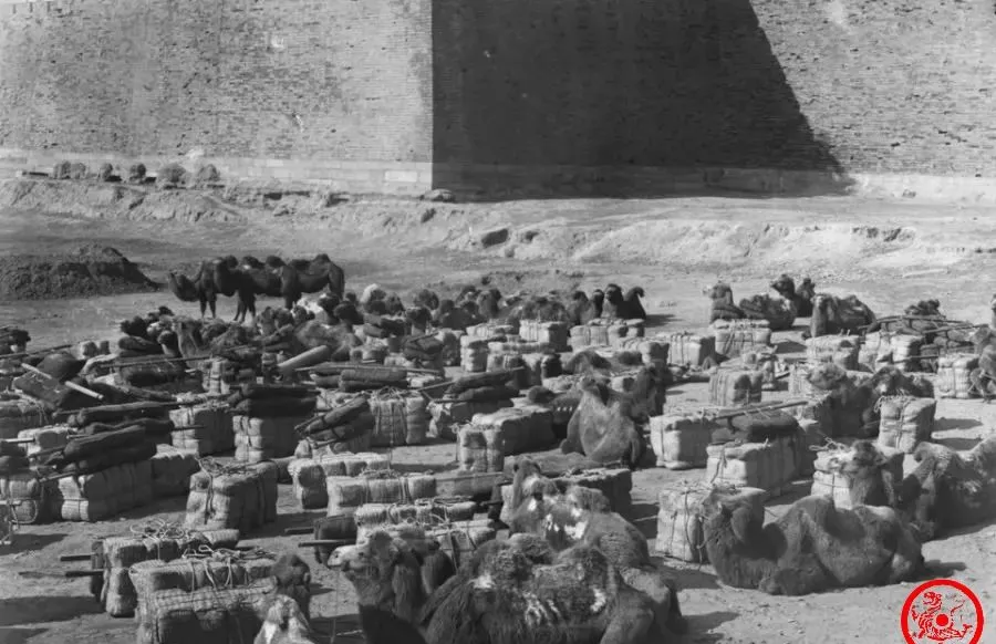 图里这一群,是北京城墙下头正在歇脚的骆驼队,满地横七竖八,货物有麻袋有木箱,都捆得实打实,骆驼蹲那儿半瞇着眼,毛色参差不齐,尾巴偶尔一甩,身上的拴绳子被磨得发亮。那时候北京城进出的柴米油盐、煤块皮裘,全靠这些家伙,头尾相接走一条街,晨曦里洋灰土翻着冷气。我爷爷常说,那会儿一到冬天,天不亮就有驼铃响进胡同,哪像现在地铁和快递一转眼进门,骆驼路过,孩子们都会盯着看,认真数有几只。
