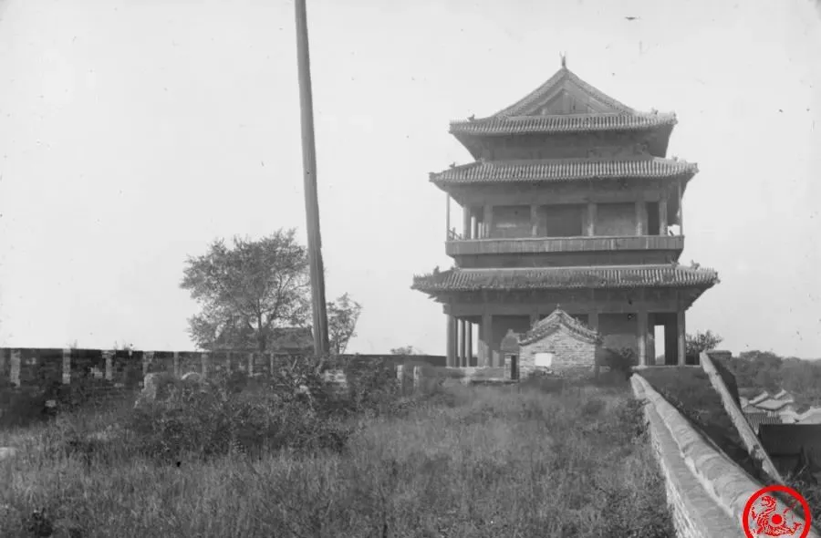 图中这大楼,是北京城的老城楼,三层屋檐咬着蓝天,下面一圈全是悠长的草,沿着墙边疯长,连石砖缝里也都钻出杂草。没人走的地方,连风都显得孤单,奶奶年轻时曾说,那年代守城的兵丁也不见得天天都来,杂草一茬一茬地长,别看这地方高瞻远瞩,那年头的冷寂是真透到骨头里,阴雨天更静悄悄。