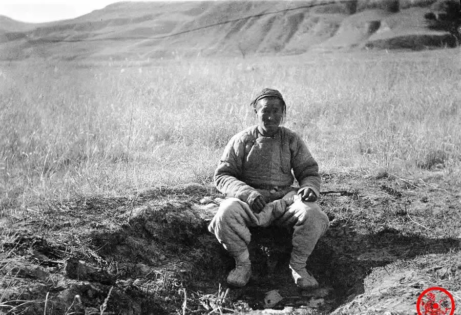 图里这位穿着棉衣的老哥,坐在石油探井旁边,地底刚刚挖开个大坑,瞧那蹲姿,后背紧挨着土地,裤腿全是尘土,没啥架子,倒是特别踏实,衣服都是深浅不一的老棉,还带着风尘和窑洞里的烟火气。