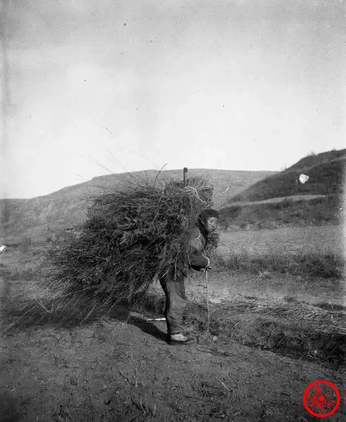 这个少年驮着一大捆柴草,脑袋几乎要被压到杵地,每根干柴都像今年最后一根收成,野地里风大,身旁只留下一串凌乱脚印,他脸上那股认真劲,像是生活教出来的,别小看这点柴草,能烧一锅饭,也能暖一屋夜。