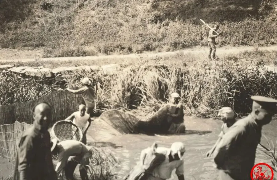 池子里的水混着泥,几个人裤子卷得老高,手里拎着竹篓网兜,赶着鱼群往一块篱笆里堵,完了就是一场**“瓮中捉鳖”的好戏**。