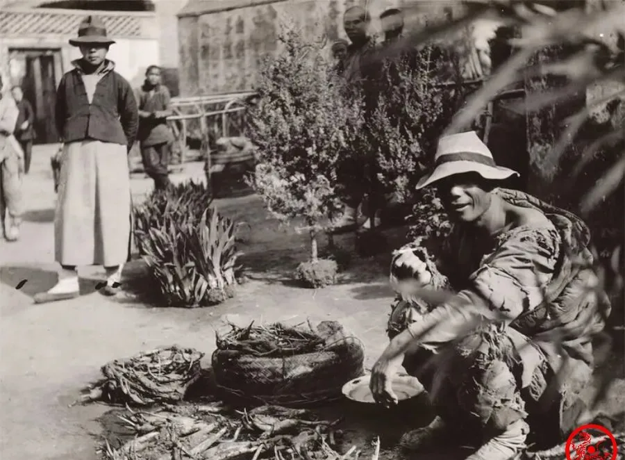 老北京老照片:粪夫晒粑粑,二三文钱买切糕