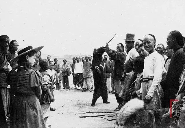 威海成为英国租借地后,很多西方人来此度假。在拍摄的瞬间,杂耍人和围观者的惊愕表情一览无余。摄于20世纪初。
