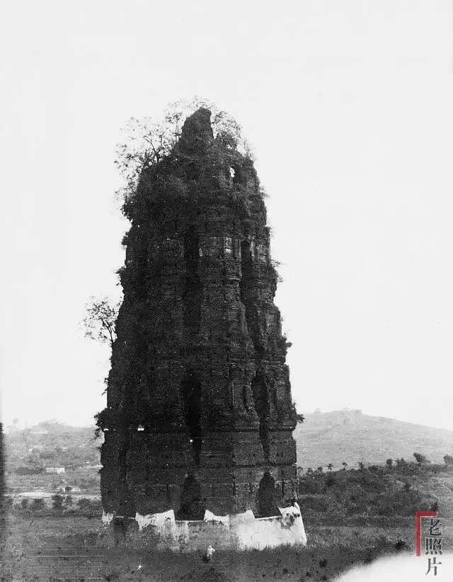 晚清时,西湖南岸的雷峰塔尚未倒塌,塔下面有一个左手叉腰站立着的人,与高大的雷峰塔形成鲜明的对比。