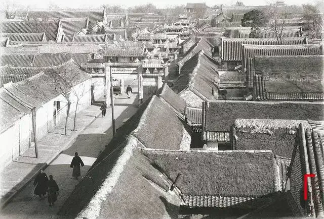 上世纪30年代末,北京西郊碧云寺附近的街道景观。古老而破败的民居,未经硬化的路面,还有站在街上那个神情倦怠的男童,看上去一派萧然。