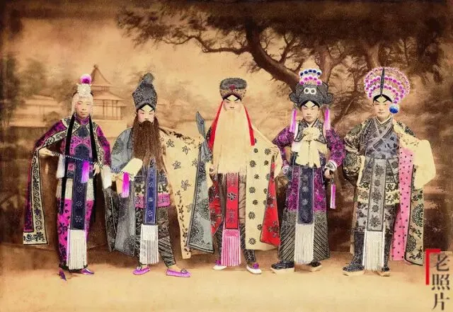 20世纪二三十年代的剧装照,拍摄者或是京剧演员或是京剧票友,由上海新北门大街上的“时新”照相馆拍摄并着色,照片用矿物颜料细致勾勒,色彩丰富,层次分明。