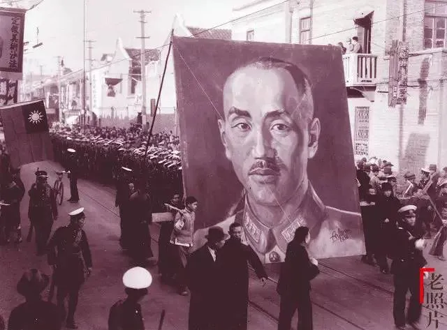 蒋介石画像赫然出现在游行队伍中。经过“训政”教育,对领袖的个人崇拜,于此可见一斑。