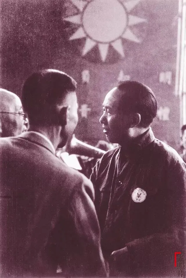 1945年毛泽东赴重庆谈判期间,在一次酒会上的留影。