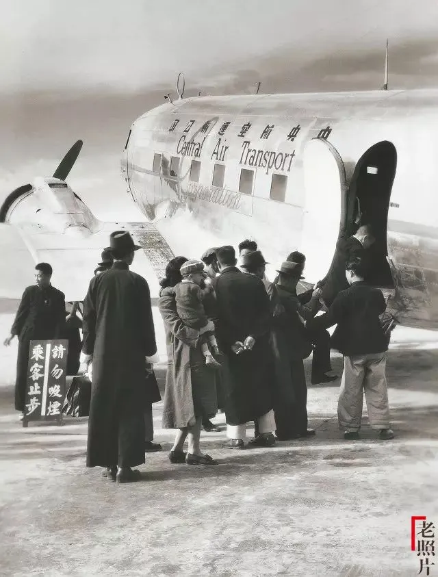 民国时期,在济南机场登机的旅客。摄于20世纪40年代。