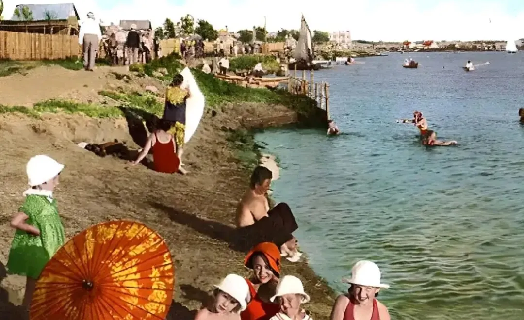 夏天时,江边挤满了游泳的外国人,江水清澈,江堤上的房子矮矮的,透着安逸。