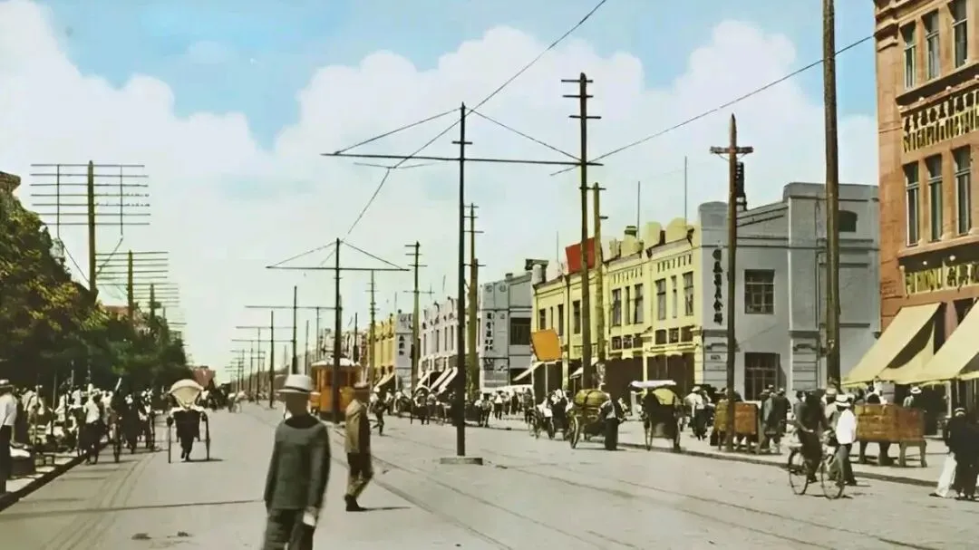 大直街上,秋林公司的影子格外显眼——这俄国人开的百货公司,当年在东北火得很,后来几易其主,却一直是哈尔滨的商业符号。有轨电车在轨道上“哐当哐当”跑,四轮马车慢悠悠地跟在后面,中西合璧的建筑上挂着五花八门的广告牌,连日文招牌都混在其中,热闹得像个小世界。松花江畔更是热闹,外国游客站在江边看船来船往,烟波浩渺的江面上,东北军的“如柏”号炮艇静静泊着,船舷上的字清晰得像昨天写的。