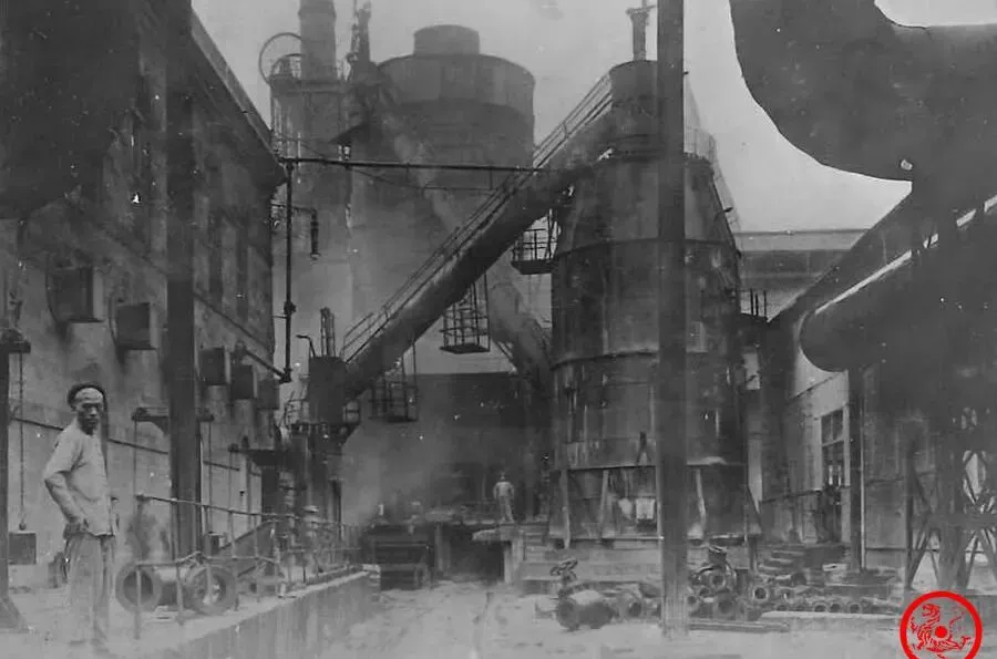 铁厂里黑乎乎一片,厂房高大,角落里摆着生着锈的大铁管,小工人旁边一站,衣服都沾着一层灰,背后就是那口炉子,呼呼冒烟的劲头和现在钢厂没什么两样,这张照片就是晚清工业化的缩影。