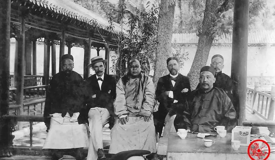 这地方可不一般,正是照片里的袁世凯山东巡抚署,茶桌上杯盏一溜排好,两边坐着的是清朝官员和外国客人,洋人的笔挺西装配着大圆桌,后头廊子里趴着好几对眼睛,气氛有些微妙。