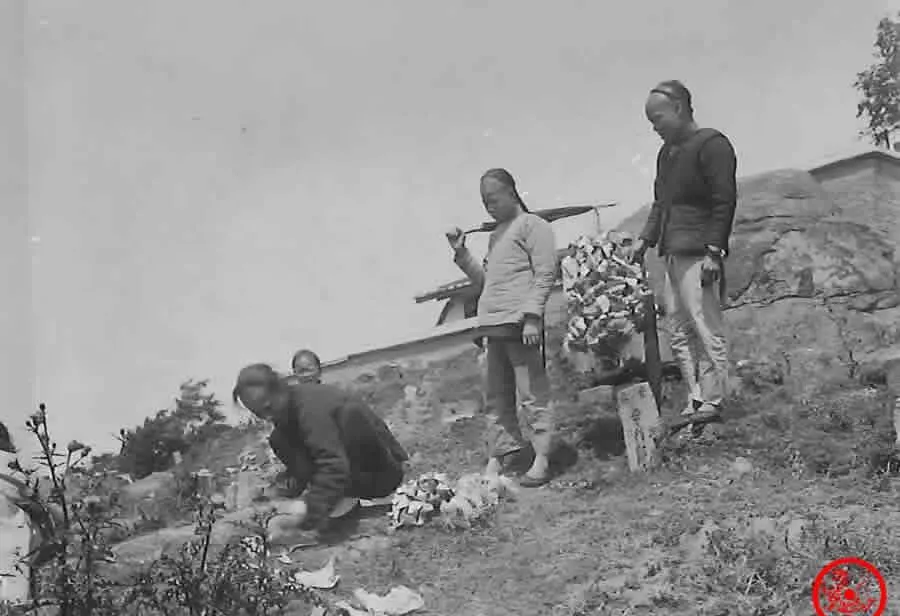 老话常说“入土为安”,照片里三个人正跪地烧纸,手里折着元宝,坟头插些松枝花片,动作不大,心意却挺郑重,清明或大年,都兴这个仪式,烧纸的火苗噼里啪啦,风一吹就卷起来。