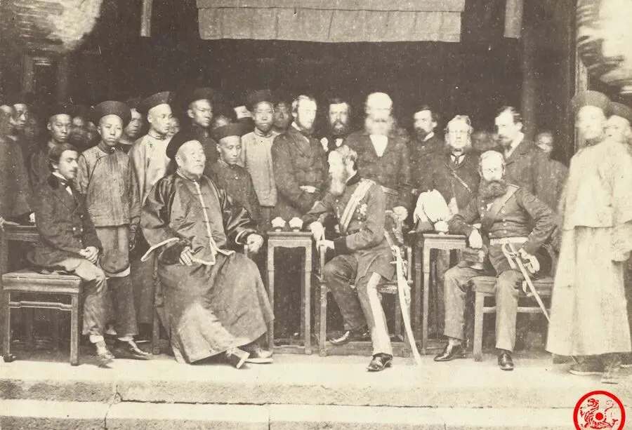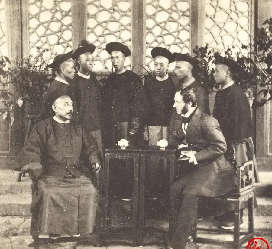这张里头围坐一圈,左首那位穿清官服的是柏贵,身边几个官差站着,正对面坐着洋人,桌上没摆多少吃食,倒是水烟盒和茶盅横七竖八,官面上的“中外一家”全写脸上,心里到底是啥滋味,估计只有当事人自己明白,当年要不是形势所迫,哪能跟老外坐一块细细商量,话虽好听,里子早掏没了。