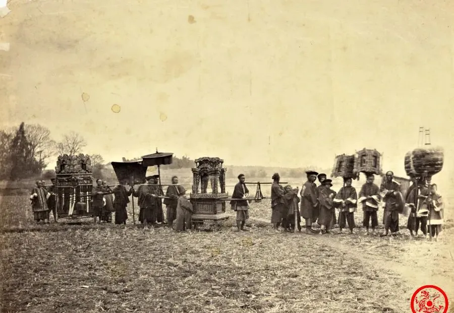 这个场面讲的是老派的婚礼,手里抬着的雕花大花轿一点不含糊,黑檀木的顶,红色镶绣边,四五个壮汉肩膀压着轿杆,走在泥土地头,左一台右一台,班头敲锣带路,后头敲着鼓的孩子眯着眼跟着跑,妈妈说那会儿嫁人家里得拼,多新鲜的花轿都舍得使,花轿周边还得跟着送嫁的、抬箱的,热闹是热闹,走远些看不过就是乡下地头最盛大的事,后来小汽车进村,再没人见过这阵仗了。
