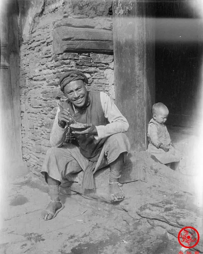 这对父子坐在门槛上,打眼就和别家不一样,衣服干净,料子厚实,孩子光头精神,父亲神态里多少带着点威严,这里讲究的是身份,哪怕只有一处光彩,族里的人都认得清,说到底,土司这一家,权大钱多,自然穿着能派头,那阵子官话一句,百姓看见“官家老爷”要远远避着,规矩护着这门人,旧时风气冷冰冰的,全落在这些衣裳细节里。