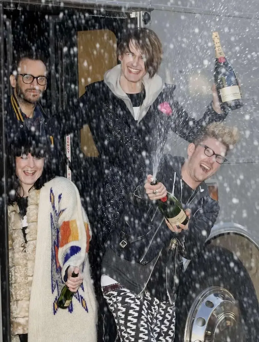 2008年,路易丝·格雷(Louise Gray)、大卫·桑德斯(David Saunders)、加雷思·普格(Gareth Pugh)与亨利·霍兰德(Henry Holland)在老杜鲁门酿酒厂内,登上由酩悦香槟赞助的伦敦复古路霸巴士车顶,开瓶庆祝。