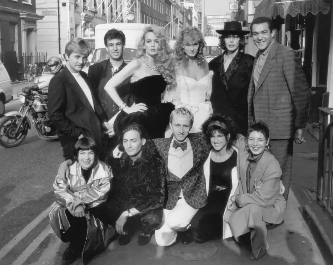 1985年,大卫·伊曼纽尔(David Emanuel)、里法特·奥兹别克(Rifat Ozbek)、布鲁斯·奥德菲尔德(Bruce Oldfield)、凯瑟琳·哈姆内特(Katharine Hamnett)、伊丽莎白·伊曼纽尔(Elizabeth Emanuel)、史蒂维·斯图尔特(Stevie Stewart)、斯科特·克罗尔(Scott Croll)、贾斯珀·康兰(Jasper Conran)、温迪·达格沃西(Wendy Dagworthy)以及杰瑞·豪尔(Jerry Hall)等时尚界人士齐聚格劳乔俱乐部,出席时尚援助慈善活动。