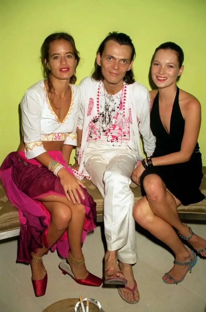 1999年9月23日,杰德·贾格尔(Jade Jagger)、马修·威廉姆森(Matthew Williamson)与凯特·莫斯(Kate Moss)在圣马丁巷酒店参加时装周派对。