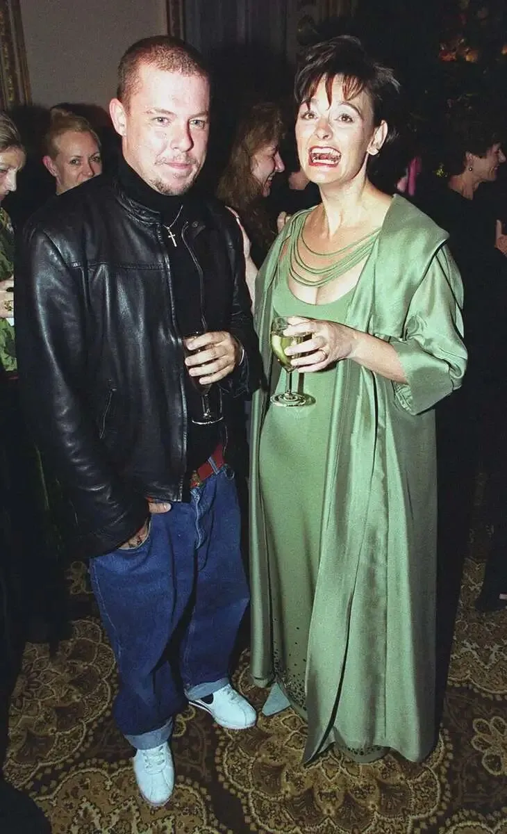 1999年伦敦时装周开幕日,谢丽尔·布莱尔(Cherie Blair)在兰开斯特宫的招待会上与亚历山大·麦昆(Alexander McQueen)相遇,激动惊呼。