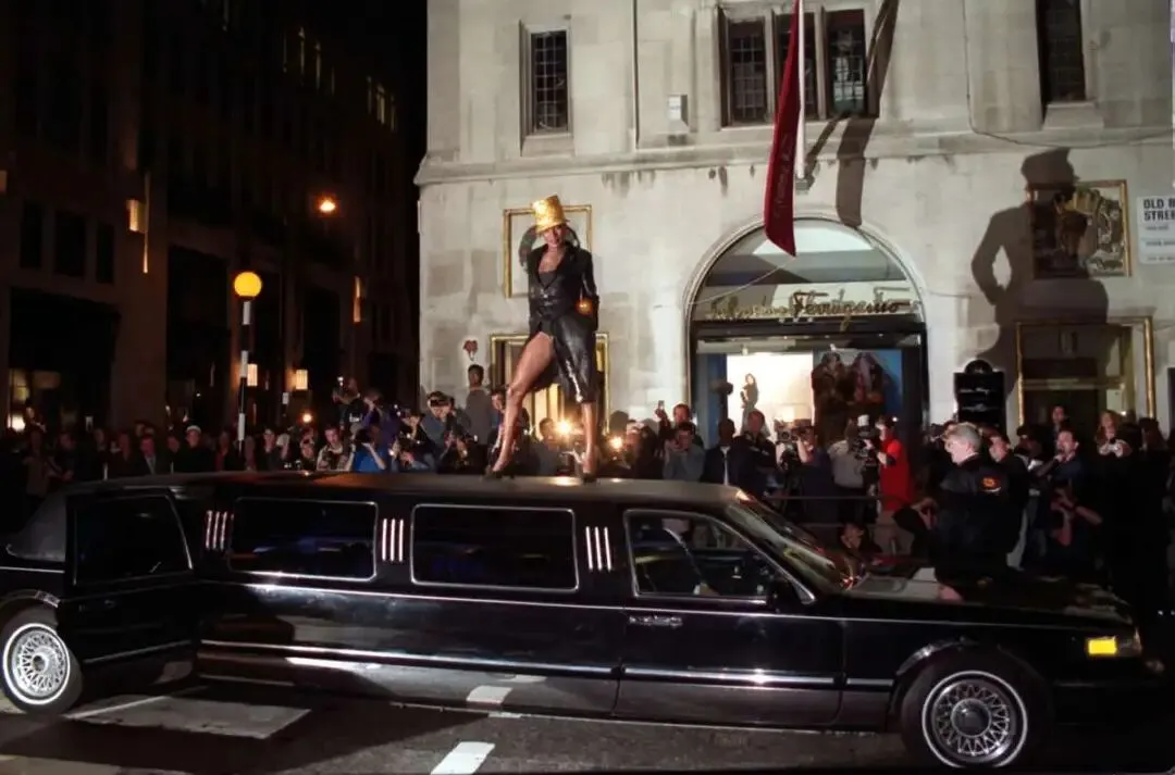 2000年,格蕾丝·琼斯(Grace Jones)在邦德街为菲利普·崔西(Philip Treacy)拍摄,以独有的气场驾驭豪华轿车造型。