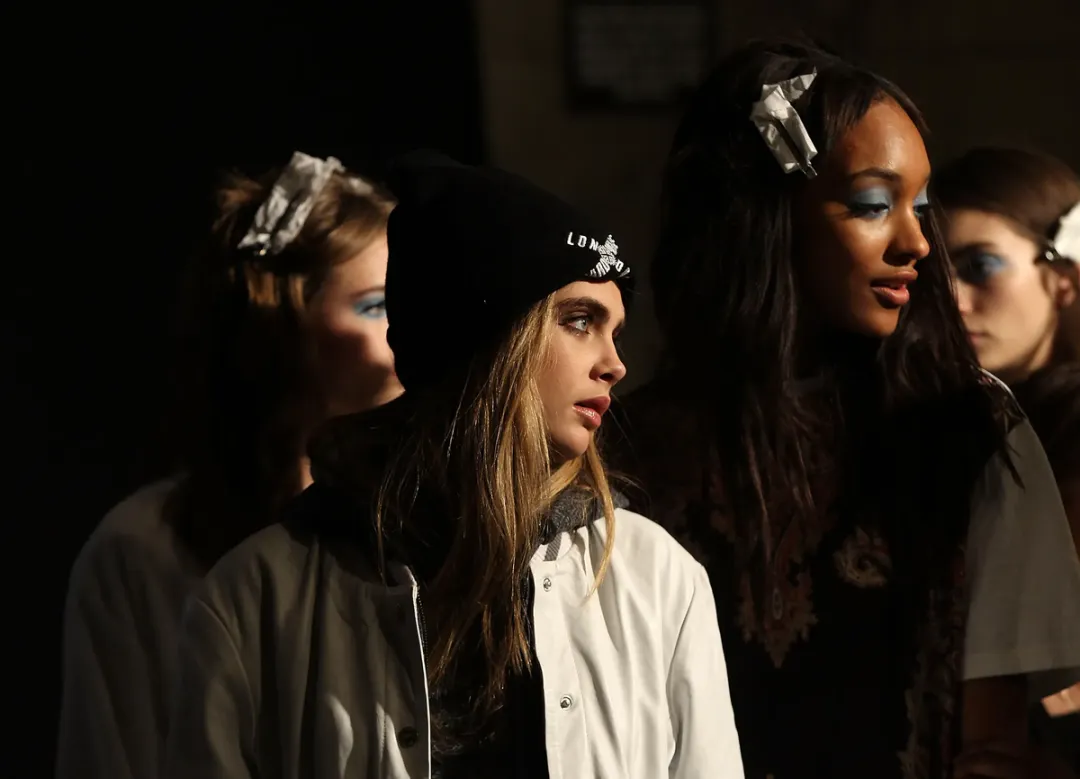 2013年,卡拉·迪瓦伊(Cara Delevingne)与卓丹·邓(Jourdan Dunn)亮相Topshop T台。