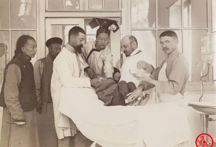 图中这一大堆人围成一圈,中心躺着小孩,这阵势搁现在直接是医院抢救室了,那会儿进西医门诊是稀罕事,穿得齐整的旗人女子压着孩子胳膊,西洋医生围两边,旁边站着一脸关切的家长,桌边摆着滴瓶玻璃罐,阳光投进来,混着安静的动静,连空气都结结实实,小时候家里有人感冒舔点药,顶多找中医把把脉,爷爷总嘀咕,“那玩意能扎针么,别折腾坏了”,现在小病小痛上医院跟赶集似的,没人躲着不去。